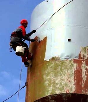 Покраска водонапорной башни производится после того, как грунты окончательно просохнут. Нанесенная безвоздушным краскопультом краска ложится ровным слоем, закрывая всю защищаемую площадь без остатка.